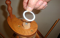 The yarn should flow evenly from the umbrella swift as it feeds through the eye rod onto the