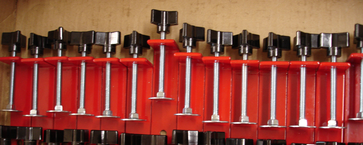 A set of two table clamps to secure the chain drive carder to the work surface are included in the accessories package of any